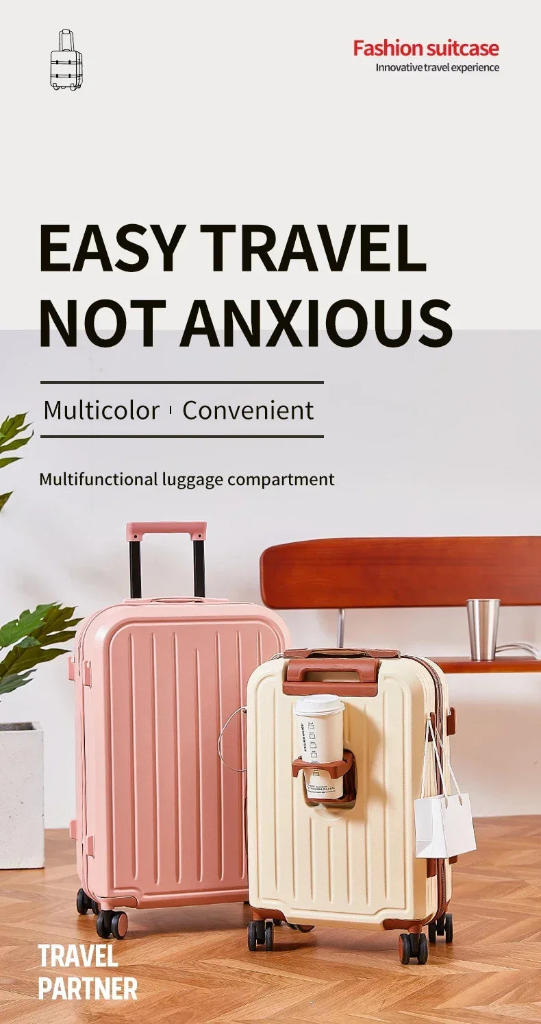 20-28 Inch Aluminum-Magnesium Luggage: Carry-On Trolley with Cup Holder and 4-Wheel Spinner-Durable Lightweight Travel Suitcase